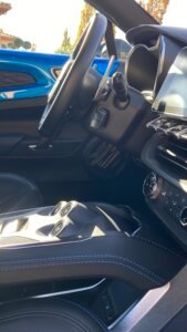 Couleur carrosserie bleu Alpine – Intérieur cuir noir surpiqures bleues