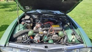 Le moteur a été reconditionné, factures à l’appui. Il est en parfaite santé et fonctionne à merveille. Aucune fumée ni bruits anormaux. Les 5 rapports montent et descendent sans accrocs. L’embrayage est récent tout comme la ligne d’échappement. Le radiateur d’origine a été remplacé par un modèle de plus grande capacité.