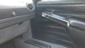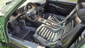 Le cuir des sièges est superbement patiné et l’ensemble des garnitures de porte est en très bon état. Les moquettes ont été changées tout comme le ciel de toit et le volant a été revêtu de cuir.