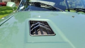 Refaite en 2021, la peinture est de belle qualité sans différence de teinte ni coulure. La teinte vert métal argenté de notre exemplaire est peu courante et correspond à la couleur d’origine du véhicule.